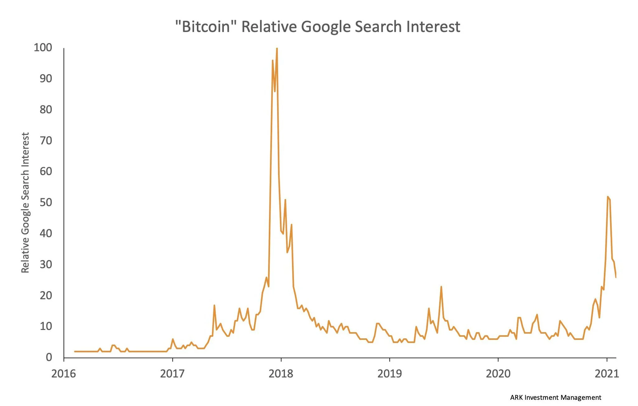The more interesting insight we can earn is that even though the bitcoin market cap is way higher in 2021 as its highest market price exceeded above $40,000, number of people searching for bitcoin related keywords has relatively shrank, according to the above chart. This shows that the large portion of market buy is done by the institutions, and not the retail investors. The uncertainty in the Cryptocurrency sector is prevalent among retail investors, and it’s reasonable since they all witnessed the 2017 crash. But this can easily be overcame in the upcoming future if more institutions invest in bitcoin. If more and more retail investors settle to take part in the bull run similar to what they did in 2017, there’s a huge probability the bitcoin price will amount to all time high.